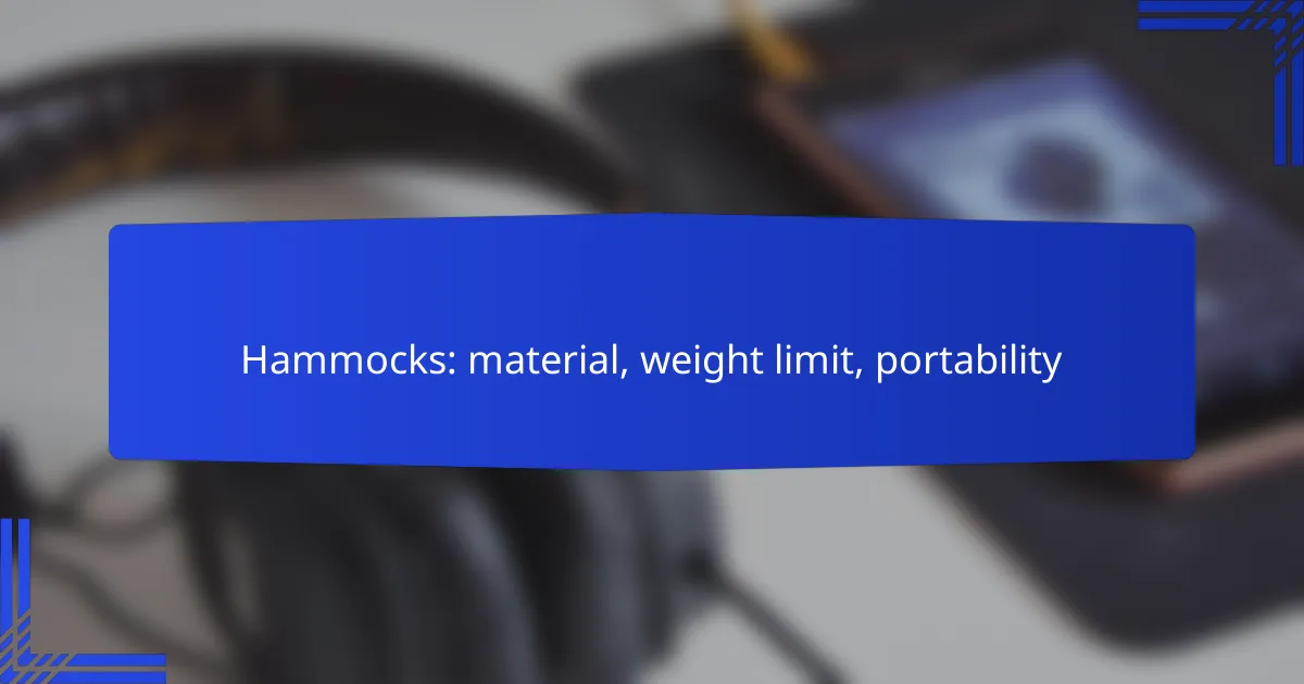 Hammocks are a versatile outdoor accessory, crafted from materials like polyester, nylon, and cotton, each offering distinct advantages in durability and comfort. When selecting a hammock, it’s essential to consider the weight limit, which typically ranges from 300 to 550 lbs, depending on the brand and design. Additionally, portability varies among types, with ultralight options ideal for hiking and packable designs focusing on compactness for travel convenience.